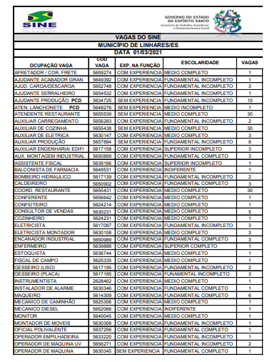 235 vagas – Confira as vagas de trabalho do SINE de Linhares