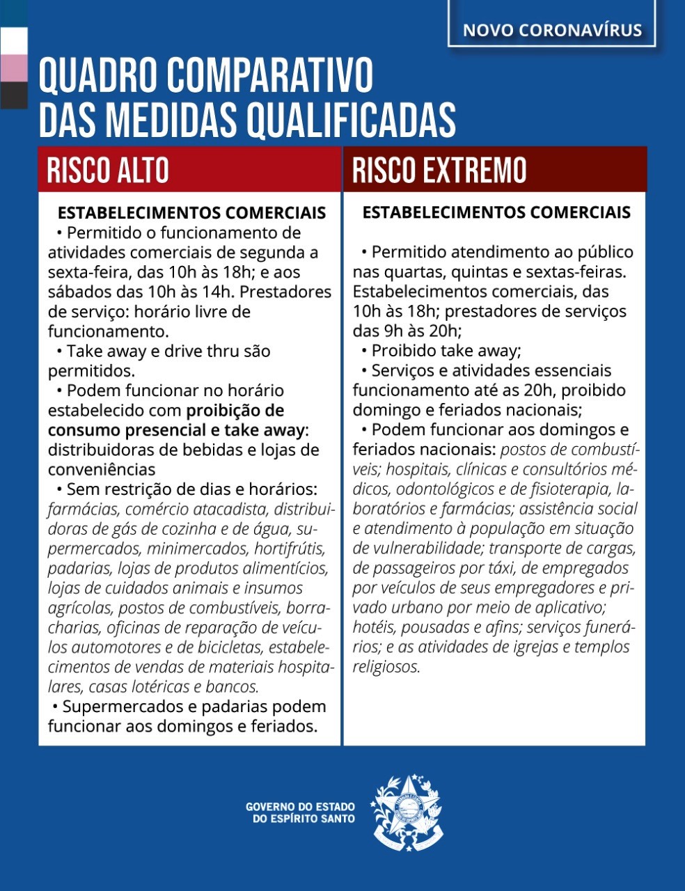 Após o governo do Estado divulgar na última sexta-feira (16/04), o novo Mapa de risco e o município de Linhares ser classificado em “Risco alto”, os dias de funcionamento do comércio e outros serviços foram alterados.