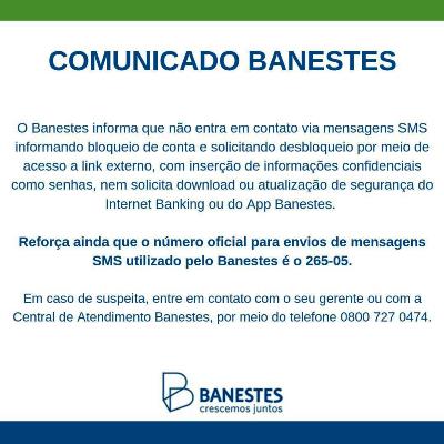 ALERTA !- BANESTES Emite comunicado sobre SMS