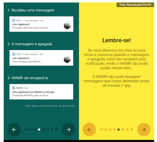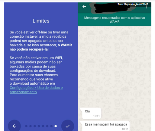 Para matar a curiosidade, o aplicativo WAMR permite o usuário resgatar as mensagens deletadas de conversas.