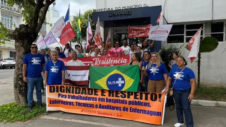 A crise na saúde pública de Linhares voltou a ganhar força na manhã desta terça-feira (23/12), durante a quarta manifestação de servidores em menos de um ano contra a gestão do prefeito Lucas Sacaramussa. O ato ocorreu em frente ao prédio da Prefeitura e reuniu trabalhadores da saúde, sindicalistas e representantes do controle social.