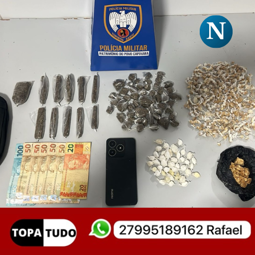 Durante as buscas nas proximidades — em cantos de muros, sob pedras e até embaixo de uma tábua — foram encontrados diversos materiais entorpecentes escondidos.