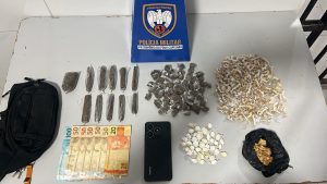 Os jovens passaram a caminhar rapidamente, o que motivou a abordagem. Na revista pessoal, nada de ilícito foi encontrado com dois deles. Porém, com um terceiro menor, os militares localizaram cinco buchas de substância semelhante à maconha e R$ 370 em dinheiro dentro de uma pochete.