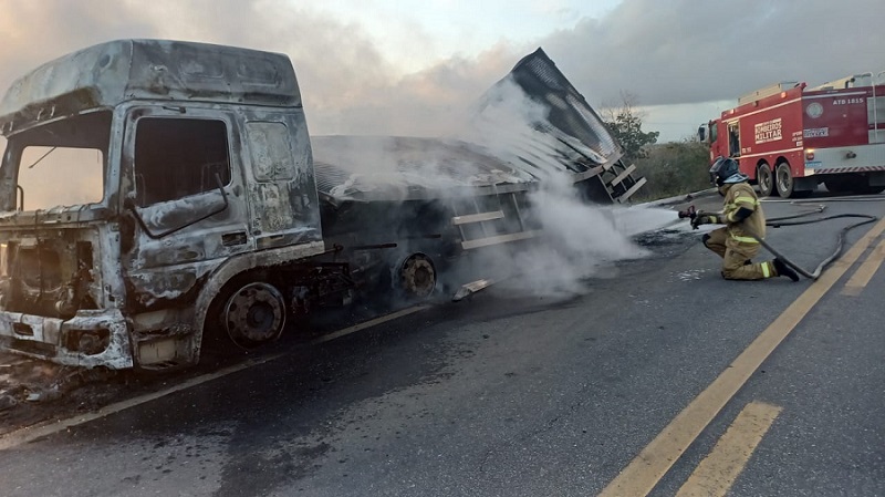 Tags: BahiaCaminhãoCarneDestruiçãoFogoIncêndioMarataízes