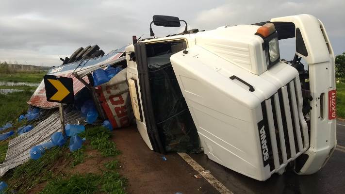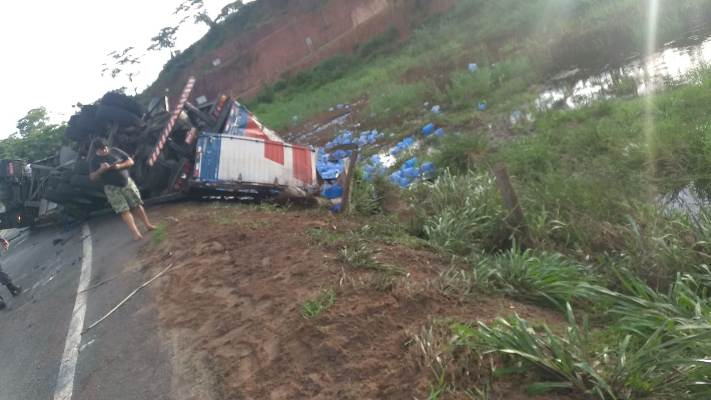Na tarde desta segunda-feira (06/01), uma carreta que trafegava na Rodovia ES 248, que liga os municípios de Linhares e Colatina, que transportava água mineral tombou após o condutor perder o controle do veículo quando passava em uma curva, nas proximidades da Lagoa Nova.