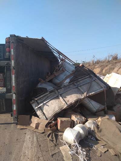Uma carreta que trafegava na tarde deste sábado (19/10), na BR 101, nas proximidades do Posto Jequitibá, em Linhares, no sentido do município de São Mateus, acabou tombando em plena via. A carga se espalhou e o trânsito no local ficou lento.