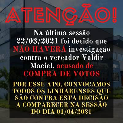 Virou novela o caso do vereador Valdir Maciel, que foi condenado em Primeira Instância, pela Justiça Eleitoral da cidade, por suposta compra de votos. Na sessão ordinária dessa segunda-feira (22/02), foi apresentada uma denuncia feita pelo ativista político Jonas Soprani, que pedia a instauração de uma Comissão Parlamentar de Inquérito, mas a maioria dos vereadores rejeitou o pedido seguindo o parecer da Procuradoria da Câmara que questionou o meio em que a denúncia chegou a casa. O entendimento é que o pedido foi apresentado por um cidadão, porém, deveria ter sido feito pela mesa diretora, ou de qualquer partido político com representação na casa.