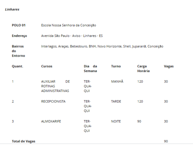 Conceição da Barra: 90 vagas