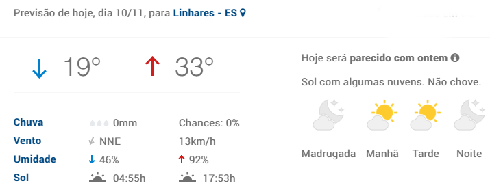 Veja a previsão para Linhares: