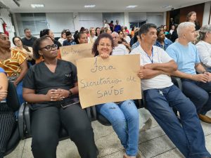 A notícia causou revolta e mobilizou novamente os profissionais da saúde, que compareceram em grande número à sessão, levando cartazes e reivindicando melhores condições.