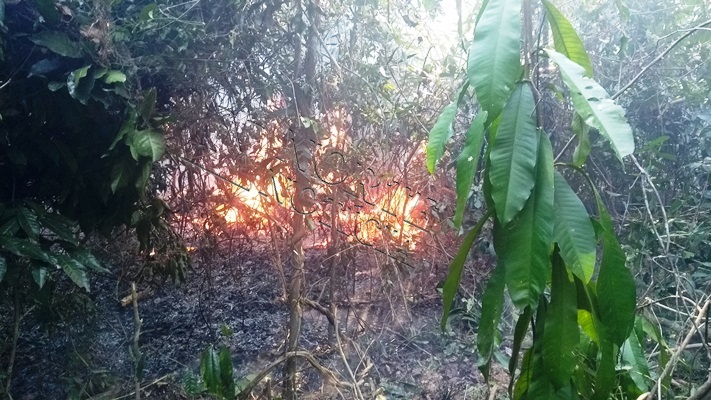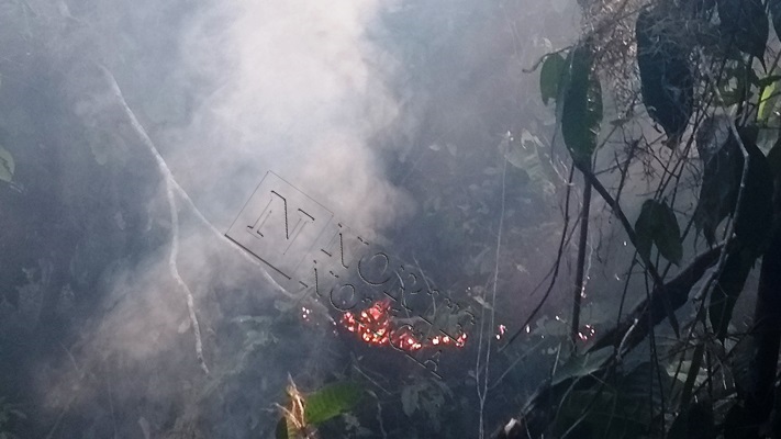 O fogo começou por volta do meio dia, e as labaredas atingiram várias arvores no centro da reserva. Os Sargentos Romoaldo e Marlon, contam que há dificuldade em controlar as chamas e que acredita que o incêndio foi criminoso.