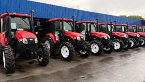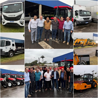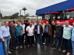 Os equipamentos entregues incluem 26 tratores agrícolas, 10 caminhões, quatro retroescavadeiras, duas motoniveladoras, duas pás carregadeiras, duas escavadeiras hidráulicas e um rolo compactador.