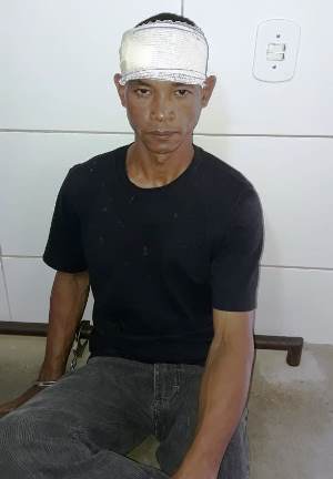 Assim que o apoio chegou, os Militares chamaram no portão, e logo em seguida foi ouvido um barulho de telhado quebrando, foi pedida permissão a dona da casa para entrar no quintal, o que foi permitido. A guarnição deu a volta pelos fundos da casa de baixo e foi constatado que  o telhado estava quebrado e ainda foram ouvidos gemidos e foi encontrado na casa e socorrido o suspeito, identificado como, José Roberto vulgo Chumbeca e ficou constatado que ele se jogou da varanda da casa de cima em uma altura aproximadamente de dois andares sobre o banheiro da cada de baixo vindo sofrer corte na cabeça e escoriações. Foi efetuada consulta no Sistema SISPES e foi encontrado um mandado de prisão em desfavor do mesmo. Todo o cenário do ocorrido foi fotografado pelos policiais. Chumbeca foi perguntado por que ele se jogou do alto e ele respondeu que se assustou com a presença da Polícia chegada e tentou descer lá por trás. O ferido recebeu cuidados emergenciais.