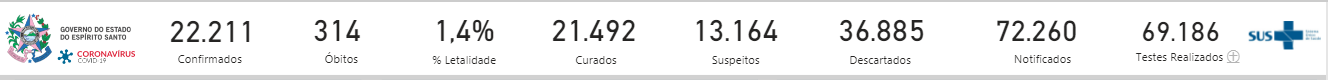 De acordo com o painel Covid, da Secretaria de Saúde do Estado do Espirito Santo, o número de casos confirmados da doença em Linhares é de 22.211, Os curados são 21. 492, o número de óbitos é 314 e os casos ativos somam 719.