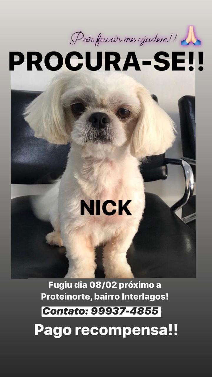 A dona do cachorro Nick está desesperada para encontrá-lo. Isso porque seu cachorro está desaparecido desde o último sábado, dia (08/02) e precisa de cuidados médicos e remédios controlados. Ela teme pelo bem-estar e pela vida do pet.