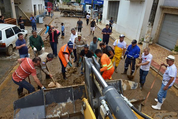 Durante todo o dia, os voluntários recolheram entulhos que estavam espalhados pelas ruas, auxiliaram na retirada de várias residências e removeram grande parte da lama acumulada nas vias. Os trabalhos foram auxiliados pelas máquinas contratados pelo Governo do Estado, além de veículos e equipamentos de órgãos do Estado, do Exército e também os cedidos por particulares.