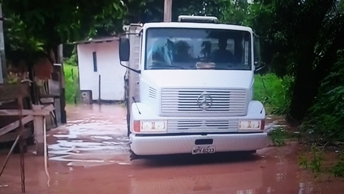 As famílias contaram com auxilio de um caminhão da Prefeitura da cidade para fazer o transporte de seus pertences até o local onde as pessoas foram alojadas.