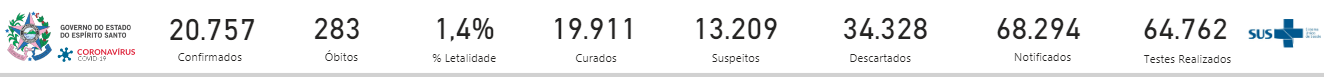 A cidade tem 19.911 pessoas que foram curadas da doença, o número total de infectados pelo vírus ultrapassou 20 mil e chegou a 20.757, o número de casos ativos no município está em 846 pessoas