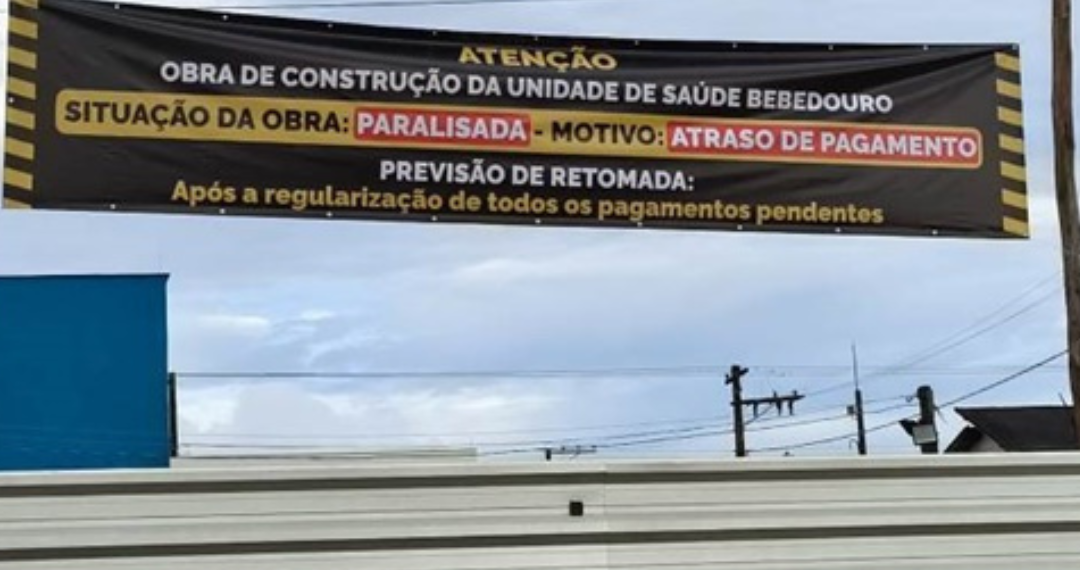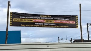 A construção da unidade teve início em 2024, ainda durante a gestão do então prefeito Bruno Marianelli. Desde então, a obra vinha avançando, porém, conforme a informação exposta na faixa, os serviços foram interrompidos e só deverão ser retomados após a regularização dos pagamentos.