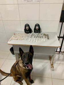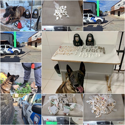 Ação com apoio da cadela policial Pantera resultou na apreensão de crack, maconha e cocaína no bairro Aviso.