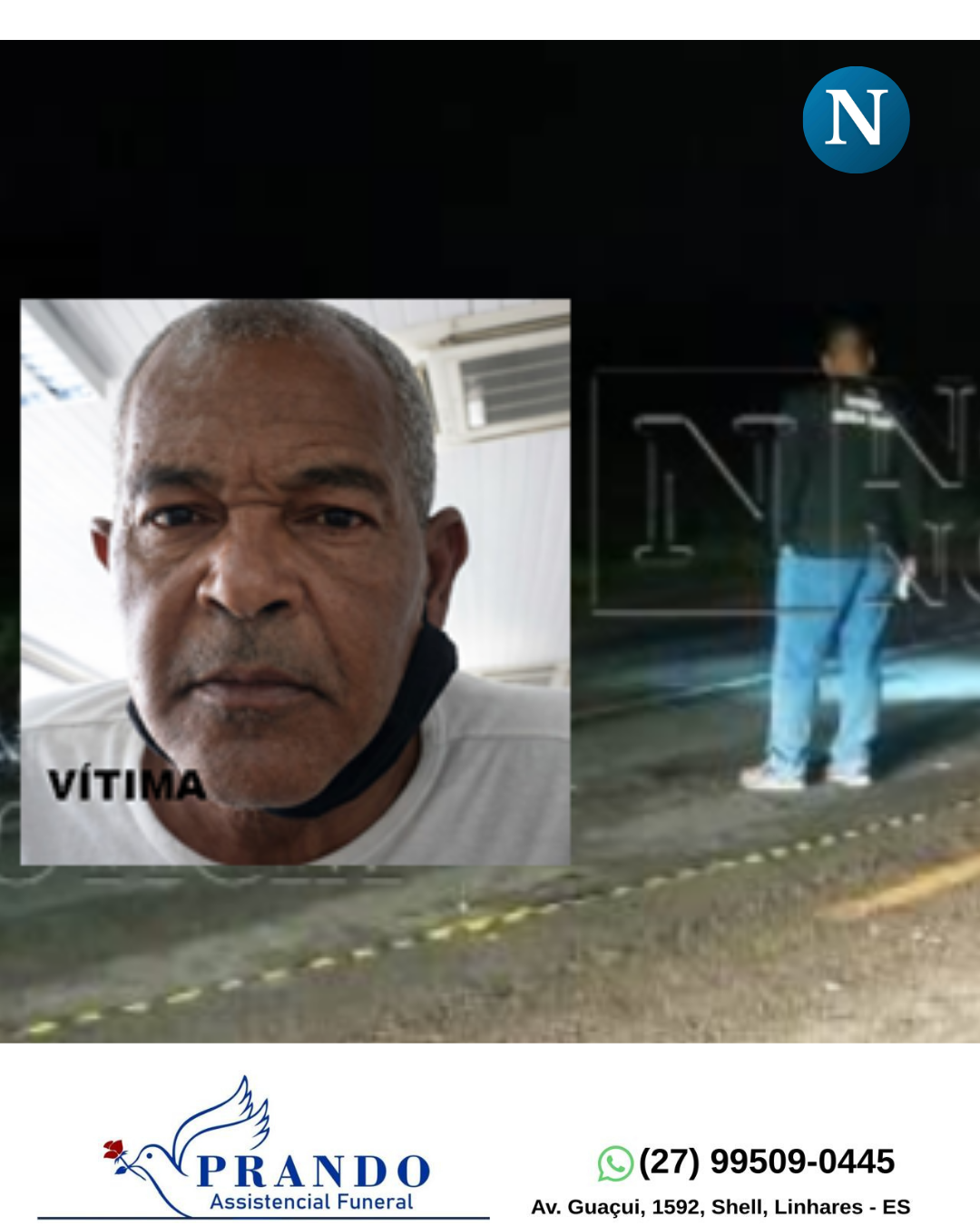 A Polícia Civil do Estado do Espírito Santo está à procura do autor do homicídio de Roberto Borges, de 59 anos, ocorrido no dia 16 de outubro de 2025, na rodovia ES-248, no trecho entre o IFES e o Residencial Rio Doce, no bairro Aviso, em Linhares, no Norte do Espírito Santo.