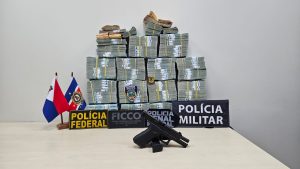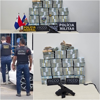Ação integrada da Polícia Federal, Polícia Militar e Polícia Penal flagrou grupo repartindo grande quantia em dinheiro; além do valor apreendido, uma pistola 9mm também foi localizada.