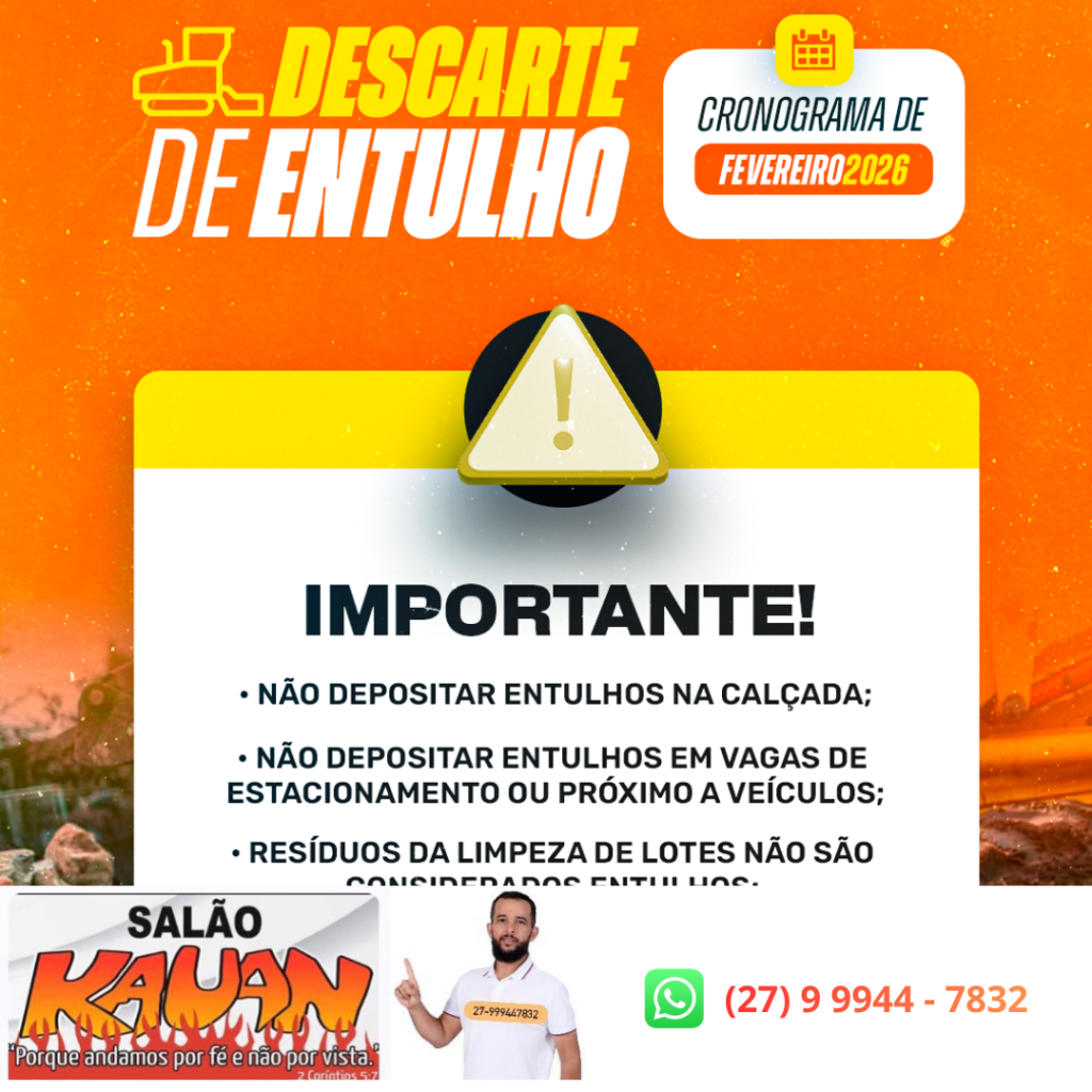 📞 Denúncias de descarte irregular de lixo e entulho podem ser feitas pelo telefone (27) 98103-0822.