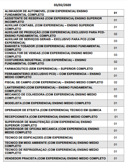 Sine de Linhares começa a semana com 30 vagas de trabalho, 29 precisa de experiência