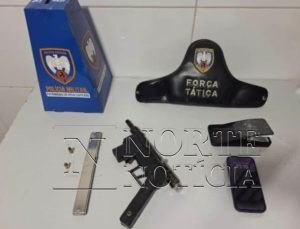 Durante um patrulhamento tático motorizado realizado pela Força Tática, policiais flagraram uma cena suspeita na comunidade do Farias, zona rural de Linhares, que terminou com a apreensão de uma submetralhadora calibre .380 carregada.