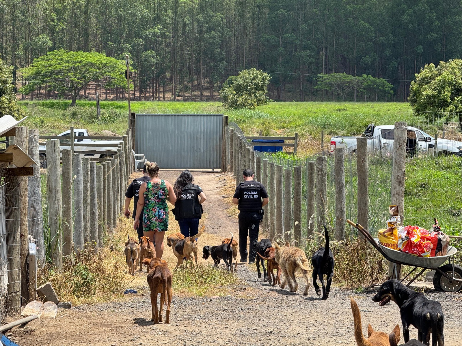 As buscas foram realizadas na sede da Organização Não Governamental (ONG) S.O.S Resgates de Animais Carentes, administrada pela suspeita. No local, foram encontrados cães sem alimentação adequada e em moradias precárias.