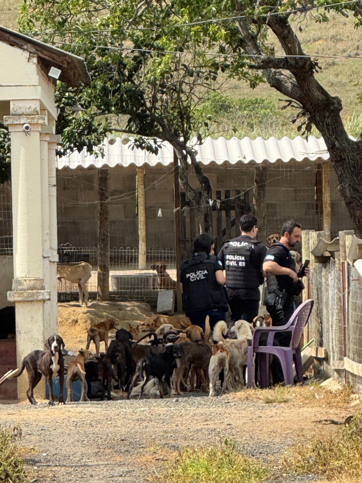 O delegado Ricardo de Oliveira Barbosa, que está respondendo pela Delegacia de Infrações Penais de Aracruz de Aracruz, informou que um dos animais já estava em óbito quando a equipe chegou ao local. No total, 26 cães foram resgatados, enquanto outros 62 permanecem no local para um resgate posterior.