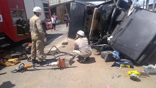A rodovia ficou parcialmente interditada durante à ação dos Bombeiros.