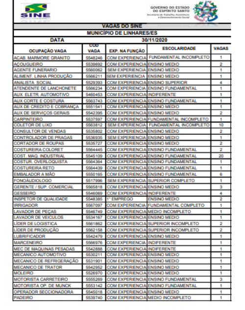 Veja as vagas de trabalho do SINE de Linhares. Tem vagas que não pede experiência