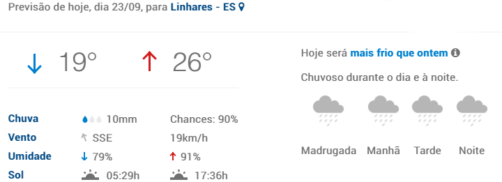 Acompanhe a previsão para Linhares.