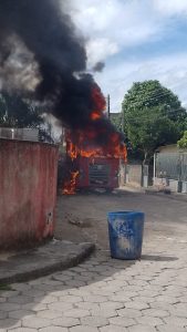 Testemunhas relataram que as chamas chamaram rapidamente a atenção de quem passava pela rua, provocando medo e apreensão entre os moradores, devido ao risco de o fogo se espalhar para residências próximas.