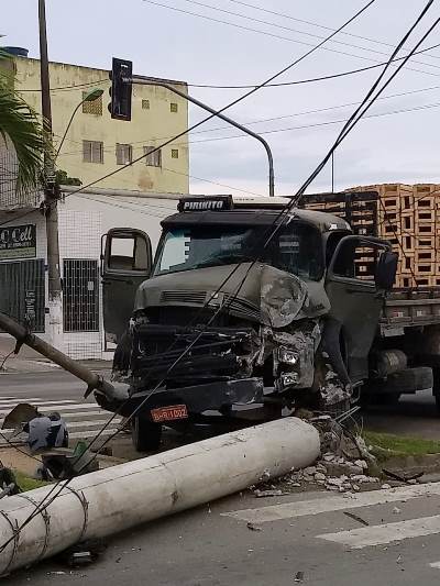 A colisão envolveu um caminha, com meia carga de caixotes, vazios, utilizados para embalar furtas e verduras e um automóvel FIT Honda. O caminhão trafegava na pista central da BR 101 sentindo Vitória, já o automóvel seguia do centro para o bairro Araçá e ao cruzar a BR houve a colisão. Com a força do impacto da batida o caminhão subiu no canteiro derrubou dois postes que dá sustentação ao semáforo e ainda um poste grande, onde fica câmera de vídeo monitoramento.