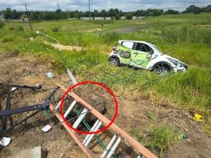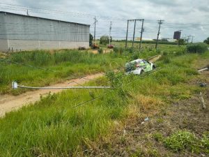 Já o FIAT Mobi sofreu danos ainda mais severos. Após a colisão, o carro atingiu um poste, chegando a arrancá-lo, além de danificar outro poste nas proximidades. Há indícios de que o veículo tenha capotado, ficando mais danificado.