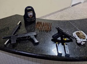 Diante da situação de flagrante e das informações de que armas e drogas estariam no imóvel, foi montado um cerco policial, com atuação conjunta da Polícia Civil, Força Tática, NOTAER e setor de Inteligência do 12º Batalhão.