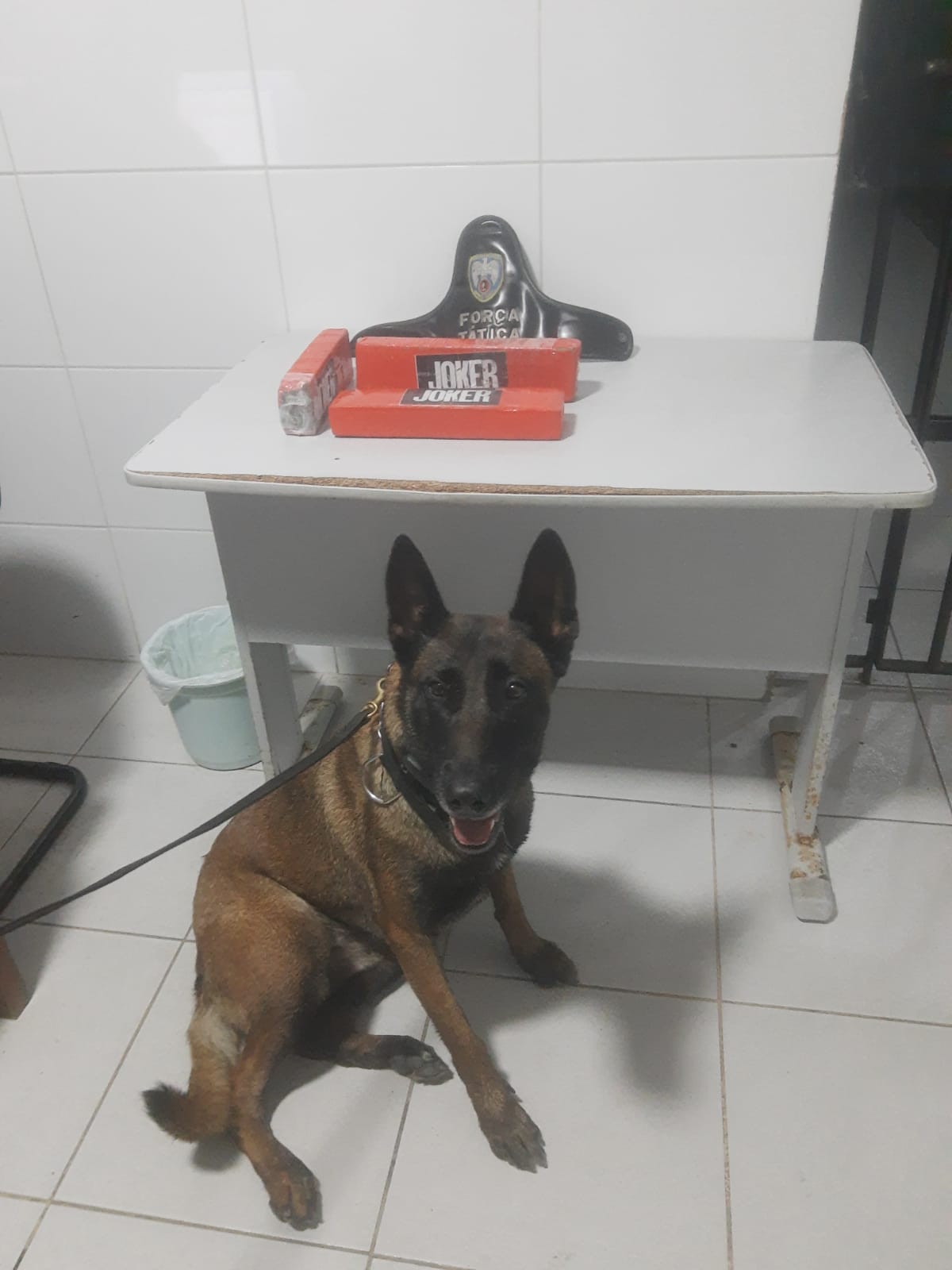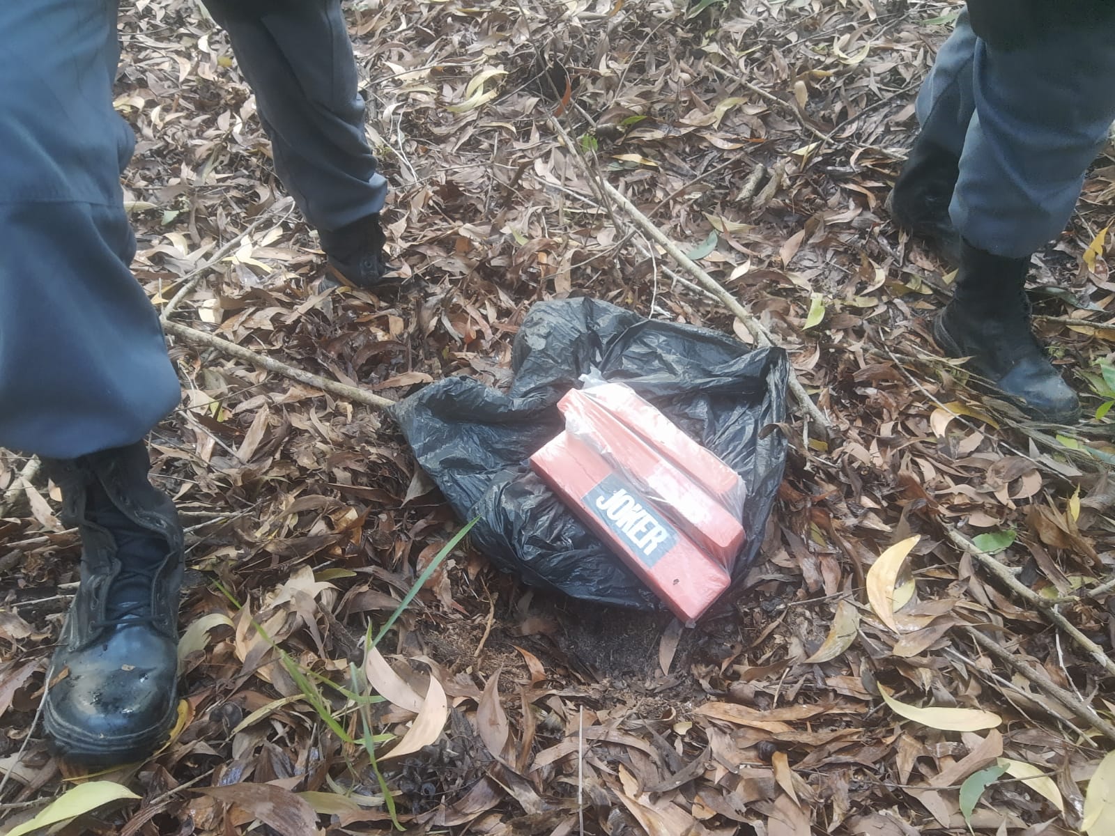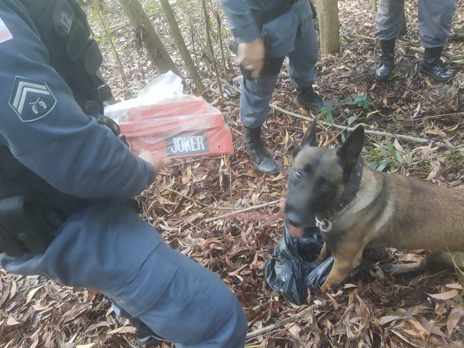 Durante a ação dos militares foi delimitado um ponto pela cadela policial, onde foi localizado, enterrado em uma sacola plástica, três tabletes de maconha que após pesados somaram 2.900 (dois quilos e novecentos gramas).
