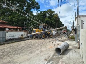 Um grande susto marcou a manhã/tarde de moradores, trabalhadores e de quem passava pela Avenida Ana Barcelos Correia, na localidade de Bebedouro, em Linhares, no Norte do Espírito Santo. Durante um serviço de recolhimento de entulhos, uma máquina acabou atingindo um poste de energia elétrica, que caiu e puxou um segundo poste, provocando transtornos e risco à população.