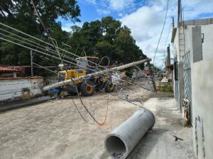 Um grande susto marcou a manhã/tarde de moradores, trabalhadores e de quem passava pela Avenida Ana Barcelos Correia, na localidade de Bebedouro, em Linhares, no Norte do Espírito Santo. Durante um serviço de recolhimento de entulhos, uma máquina acabou atingindo um poste de energia elétrica, que caiu e puxou um segundo poste, provocando transtornos e risco à população.
