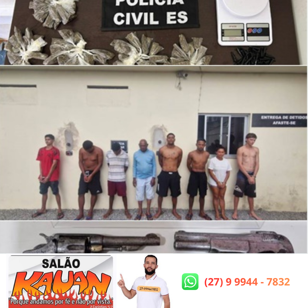 Ao todo, foram oito mandados de prisão cumpridos, além da apreensão de grande quantidade de drogas e duas armas de fogo com munições. Várias viaturas deixaram a Delegacia Regional de Linhares ainda de madrugada, em uma operação sincronizada que chamou a atenção pela eficiência e disciplina das equipes envolvidas.