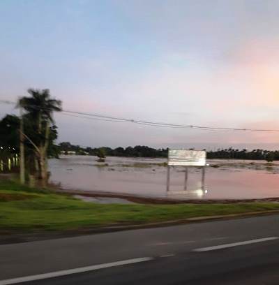 Quem passou na manhã desta quarta-feira na BR 101 entre os Quilômetros 151 e 153 viram uma paisagem totalmente diferente da costumeira, é que a água do Rio Doce ocupou boa parte das margens da BR 101, que fica entre a Ponte Joaquim Calmon e Posto da Polícia Rodoviária Federal, em Linhares.