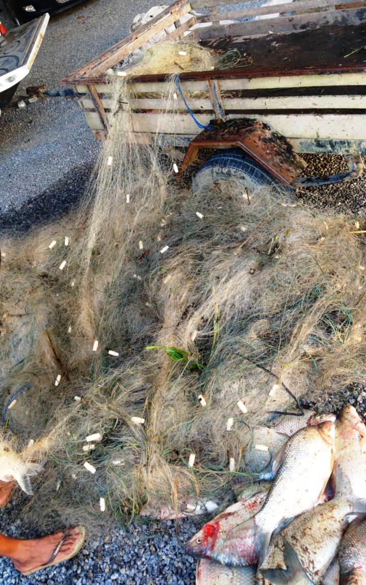 Por volta das 05h: 30 desta quinta-feira (09/01), A Polícia Militar Ambiental do 2º BPMA de Colatina, apreendeu sete redes, que juntas mediam, 2.500 metros linear, um Motor de 18 HP, além de aproximadamente 90 quilos de pescados diversos.