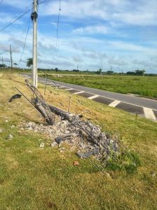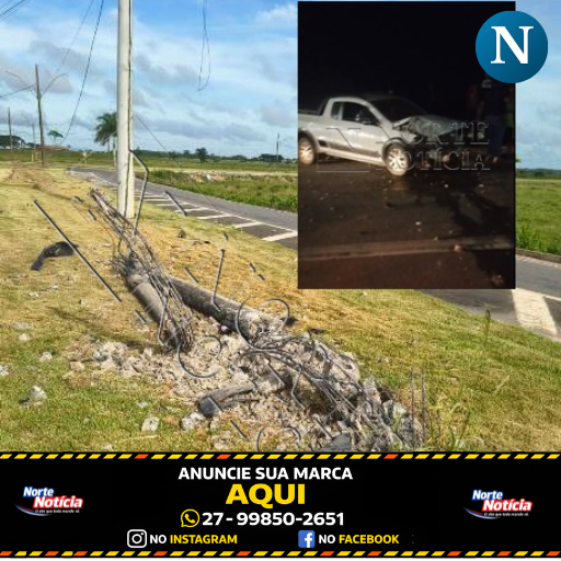 O impacto foi violento, provocando danos materiais severos ao automóvel e a quebra da estrutura de concreto do poste.