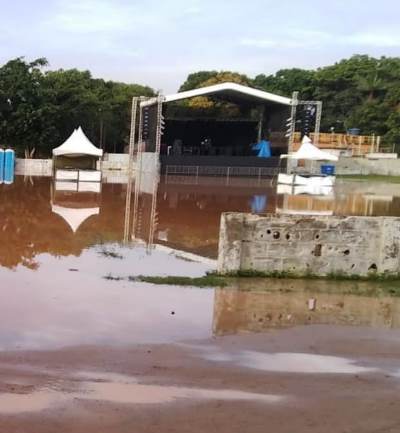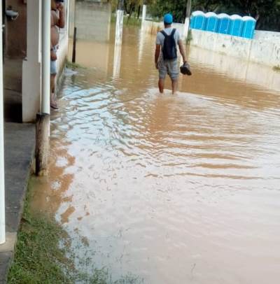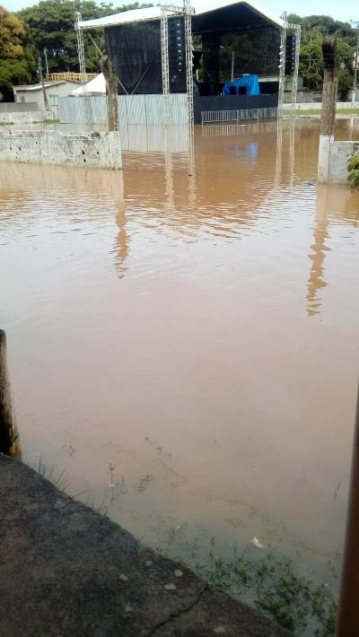 Os moradores do balneário enviaram várias fotos até do campo de futebol que também já foi invadido pelas águas e se aproxima de várias residências.