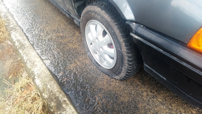 Um buraco aberto no meio da via, próximo à entrada do Bairro São José, em Linhares, causou prejuízos e transtornos para cerca de 06 motoristas que passaram pelo local na tarde desta quinta-feira (12/03). Com a chuva, o buraco ficou coberto pela água, difícil de ser identificado pelos motoristas. Ao cair na cratera, os pneus dos carros eram furados.