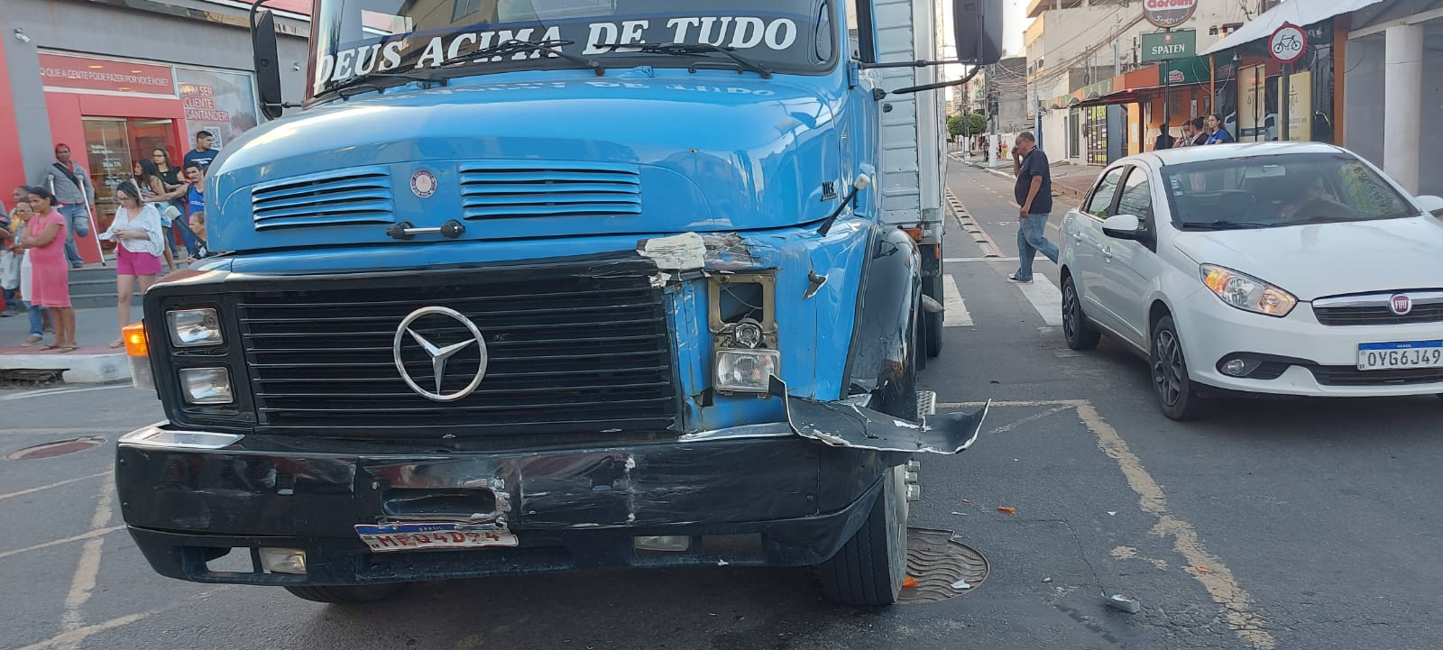 Uma colisão entre um caminhão e uma Hilux, no cruzamento da Av. Augusto de Carvalho com a Av. Rui Barbosa, deixou uma família com ferimentos leves, que são os ocupantes da caminhonete Hilux.
