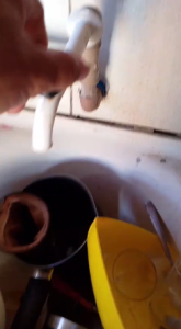 Outro vídeo enviado mostra uma torneira sendo aberta, sem que saia qualquer gota de água. A moradora relata que não há abastecimento nem para lavar vasilhas ou roupas.