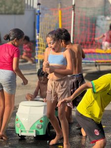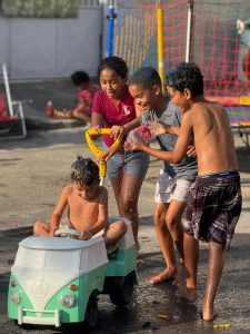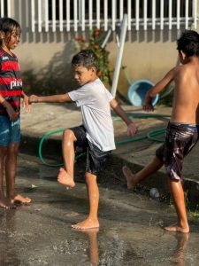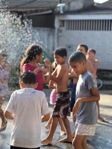 Nada de celular ou tablet: o Dia das Crianças na Rua Arlindo Francisco dos Santos foi raiz, com banho de mangueira, brincadeiras na lama, banho de garrafa, música e muita animação. E não faltou o lanche, preparado com carinho pelos moradores, garantindo energia para a garotada aproveitar cada momento.